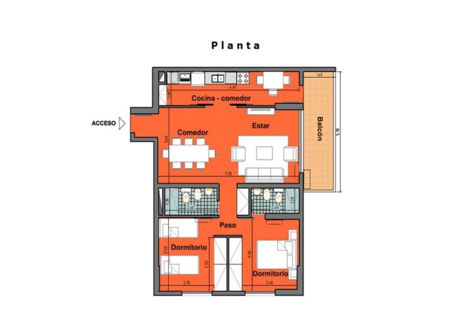 ✅ Amplio estar comedor con aire acondicionado y portero eléctrico.