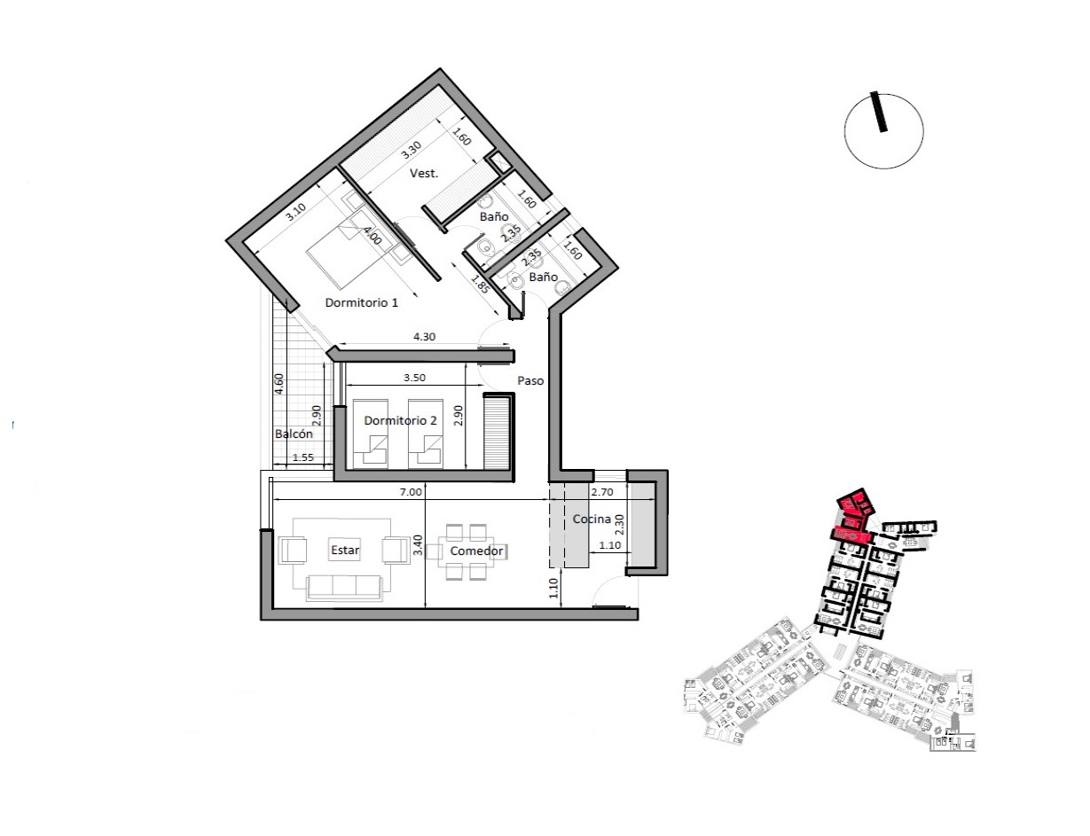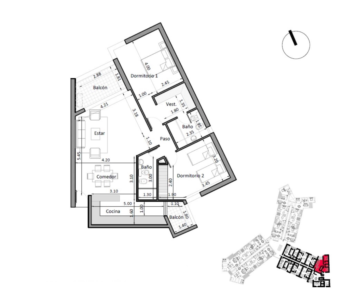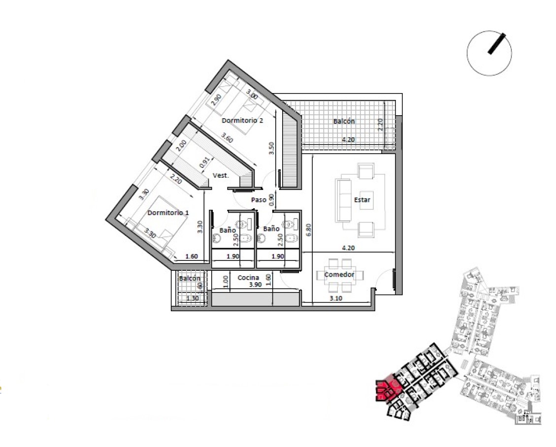 ✅ Hay seis prototipos de dptos. de 2 dormitorios con 2 baños. Los mismos van desde 101 a 107 m2.
