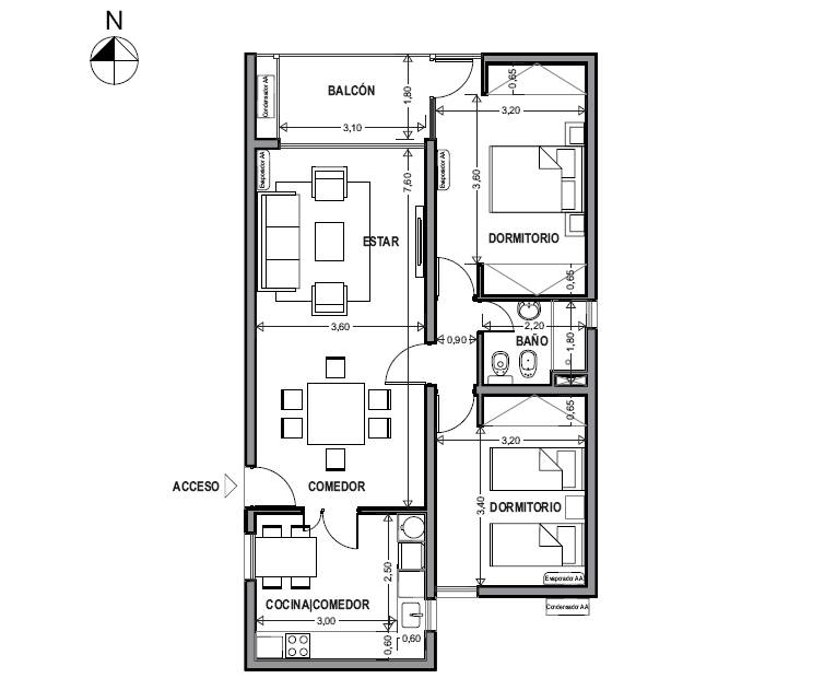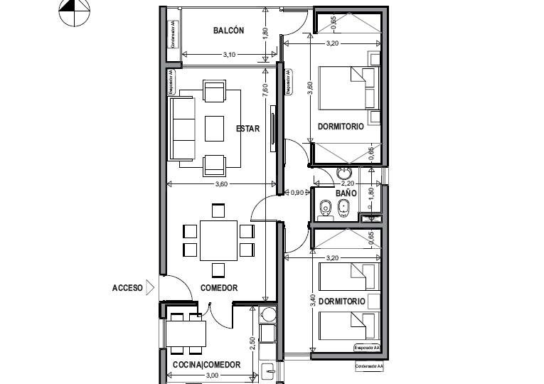 ✅ Estar comedor con aire acondicionado, portero electrico y puerta ventana a balcón.
