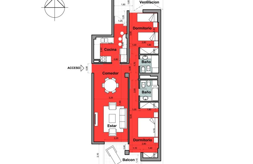 ✅ Amplio estar comedor con puerta ventana a balcón terraza hacia el sur, portero visor.