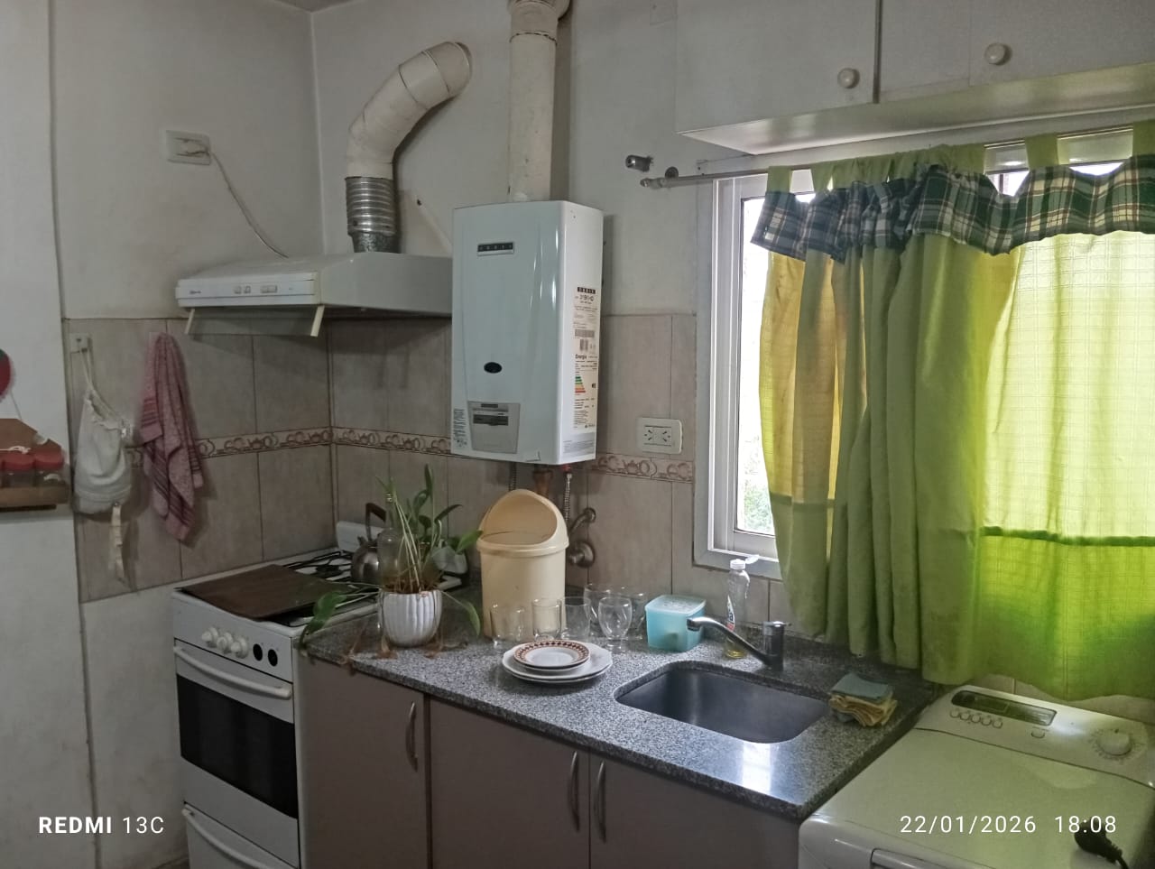 ✅ Amplia cocina- comedor con muebles de alacena, bajo mesada y artefactos (calefón a gas, campana y ventilador de techo)