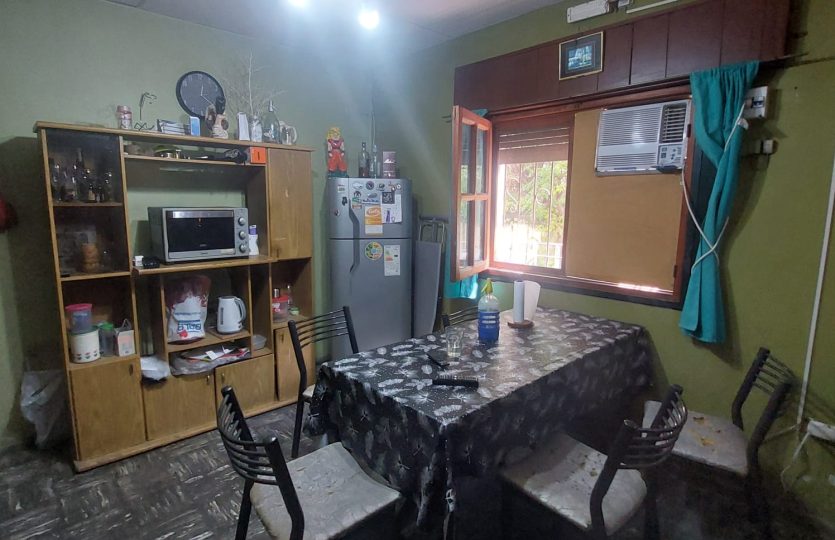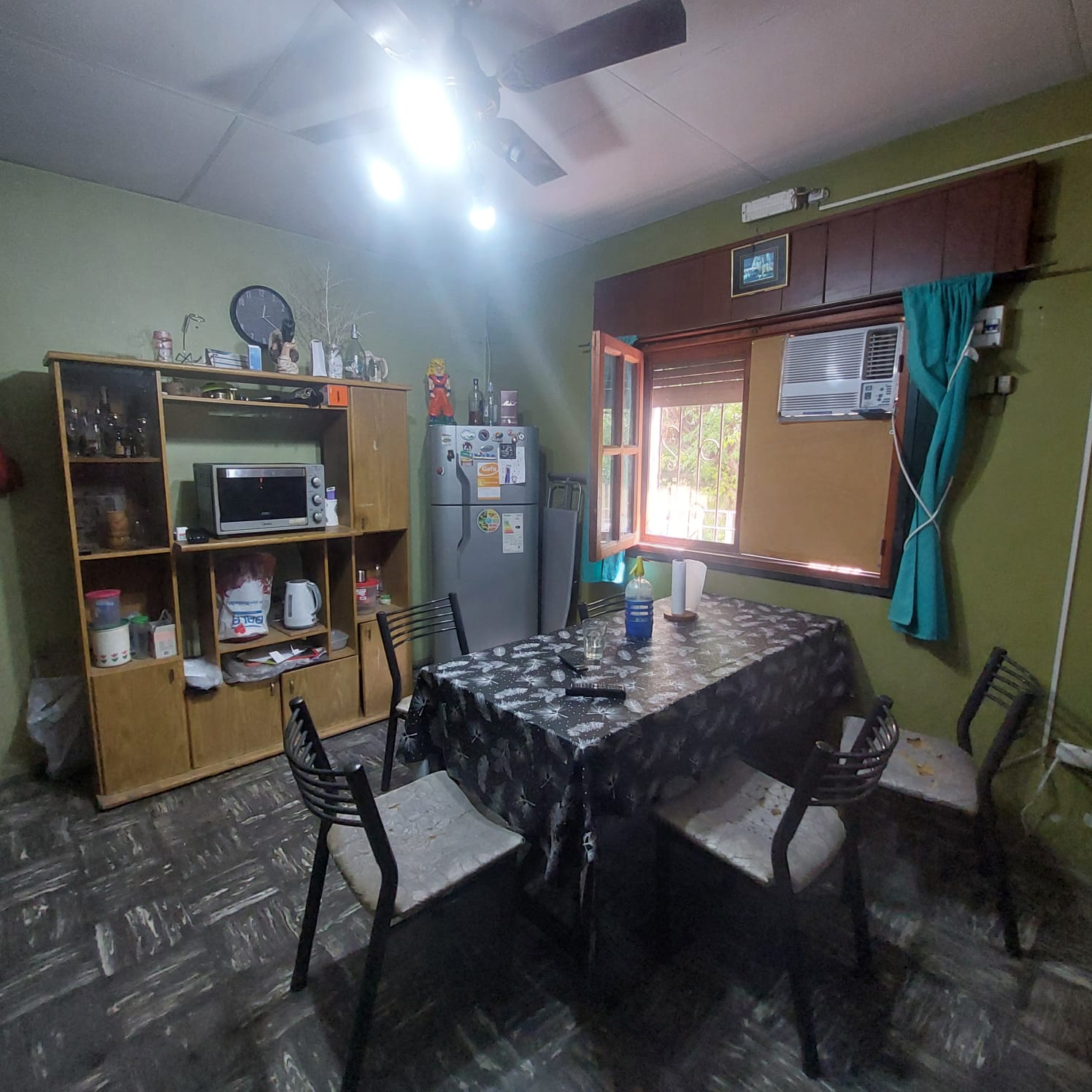 ✅ Cocina-comedor con mueble bajo mesada, alacena y artefactos (aire acondicionado tipo ventana, termotanque y ventilador de techo).