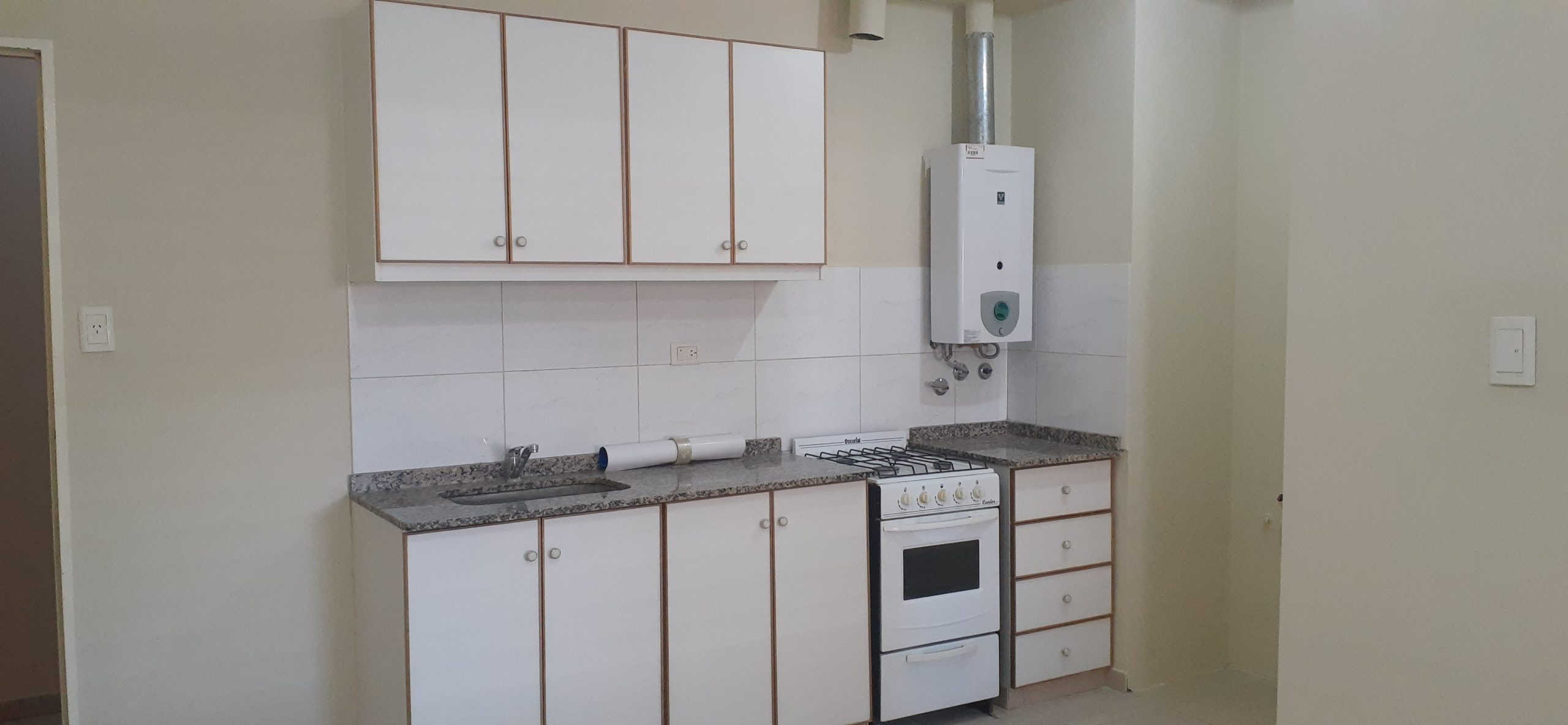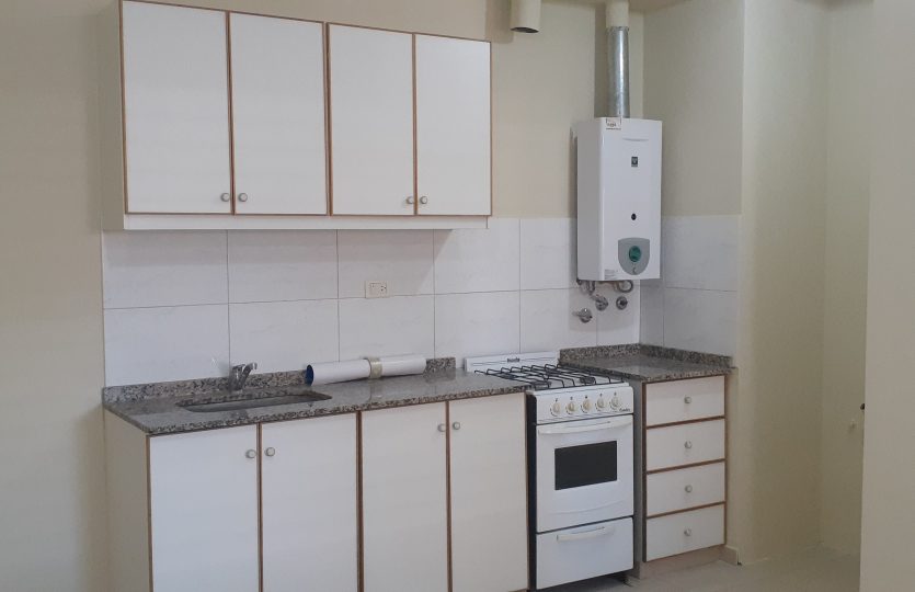 Cocina – Comedor con muebles de alacena, bajo mesada y artefactos (cocina, calefón, portero electrico, calefactor y aire acondicionado tipo split)