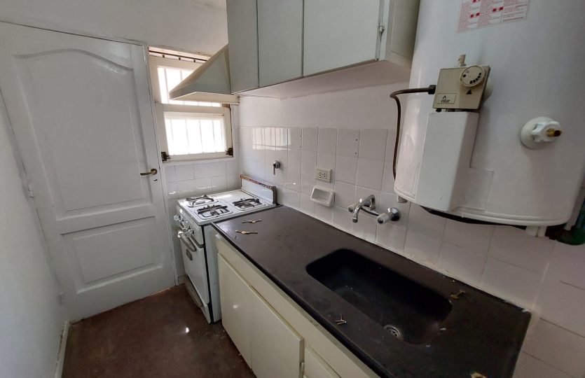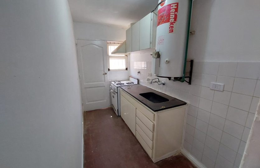 ✅ Cocina con mueble de alacena y bajo mesada, artefacto de cocina, calefón y campana.