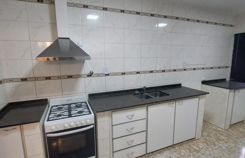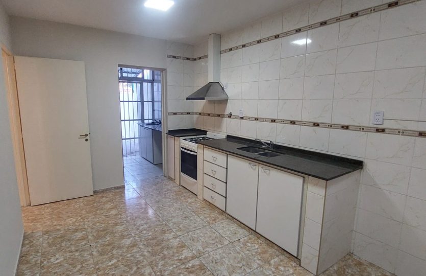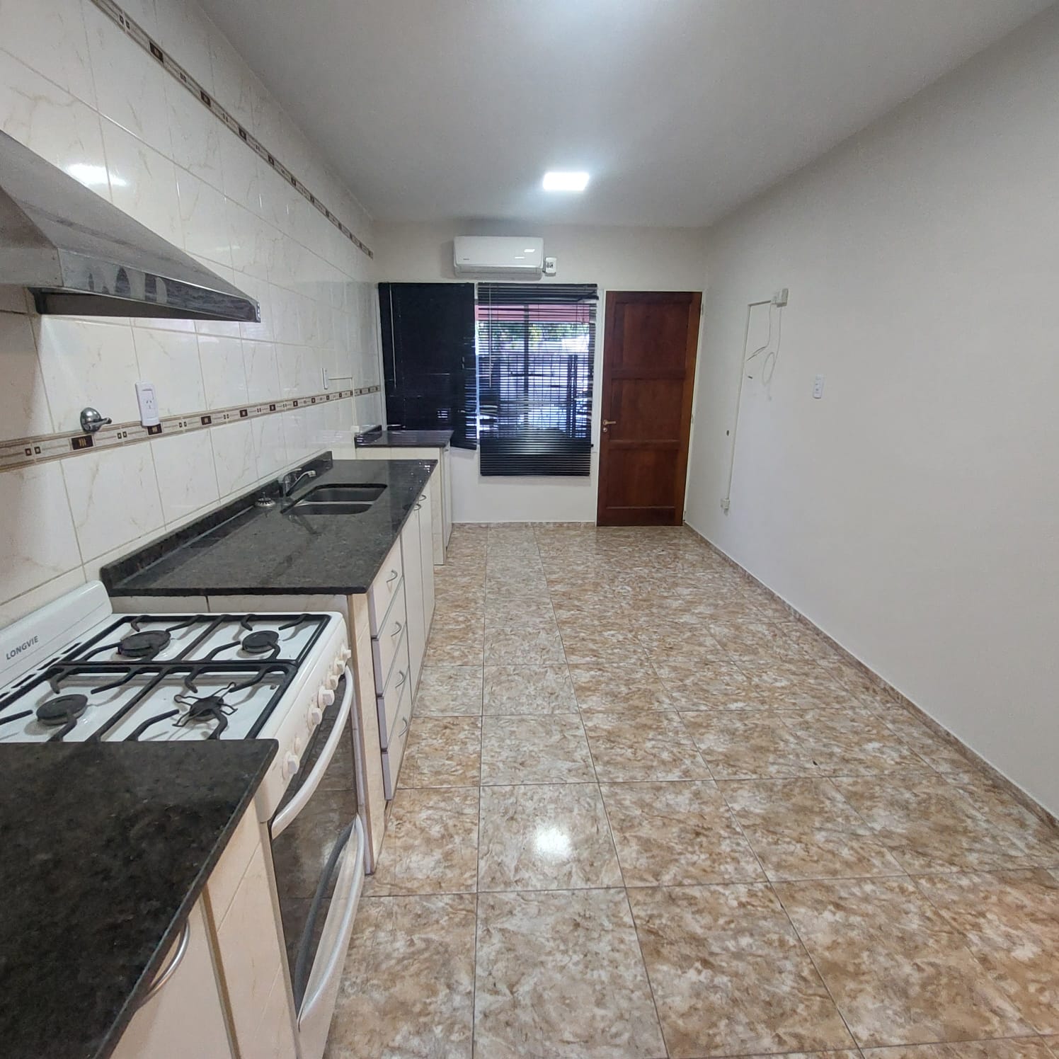 ✅ Cocina con muebles bajo mesada, cocina, campana y aire acondicionado.