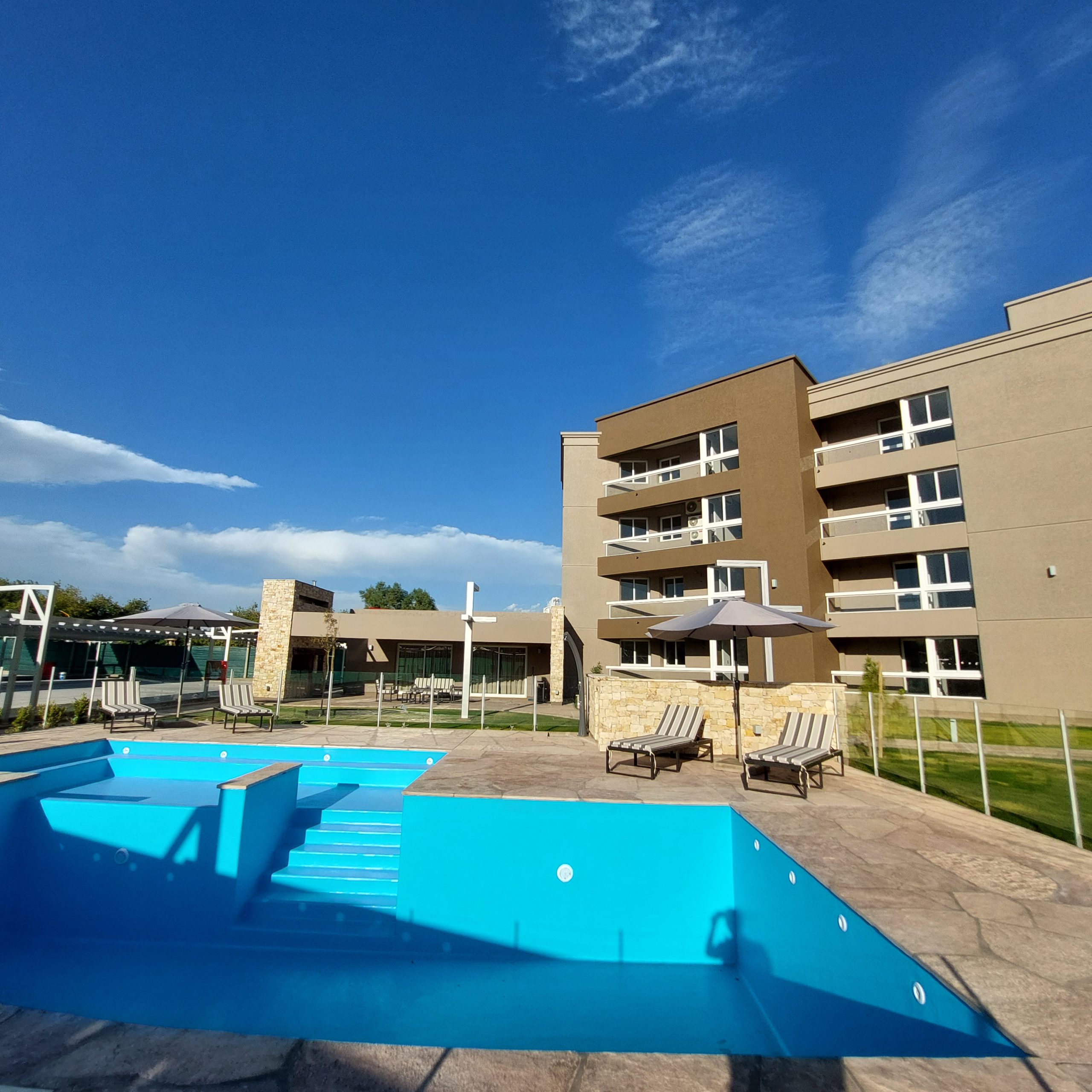 – Piscina con solarium y jardin.