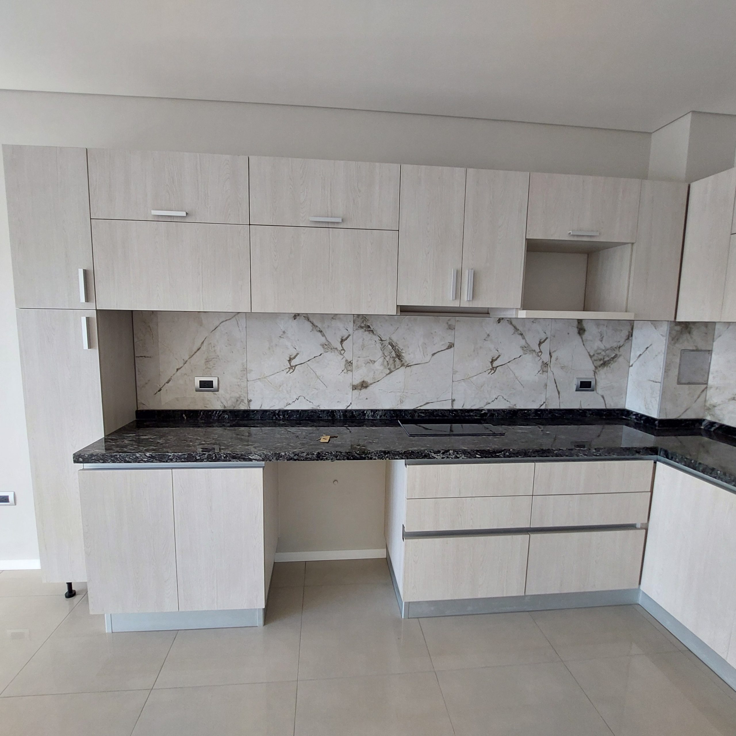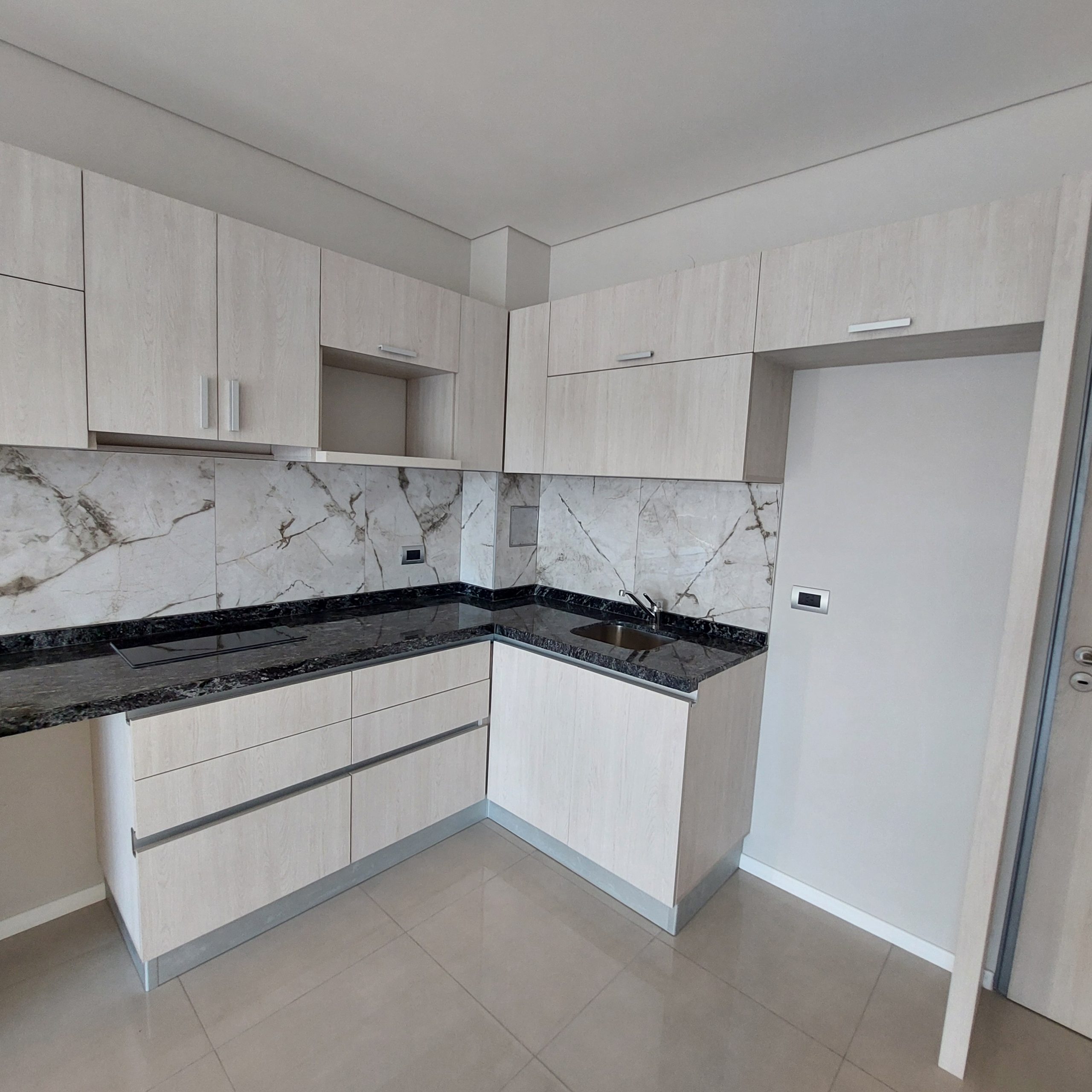 ✅ Cocina integrada en forma de «L», posee mueble de alacena, bajo mesada, termotanque, anafe de vitroceramica y purificador de aire.