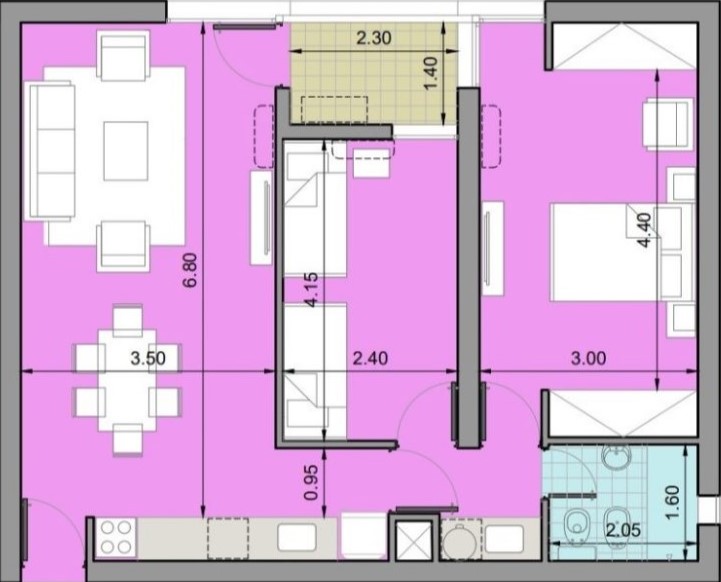 ✅ Cocina integrada posee mueble de alacena, bajo mesada, cocina y purificador de aire.