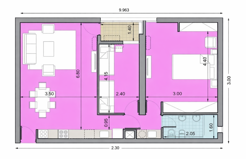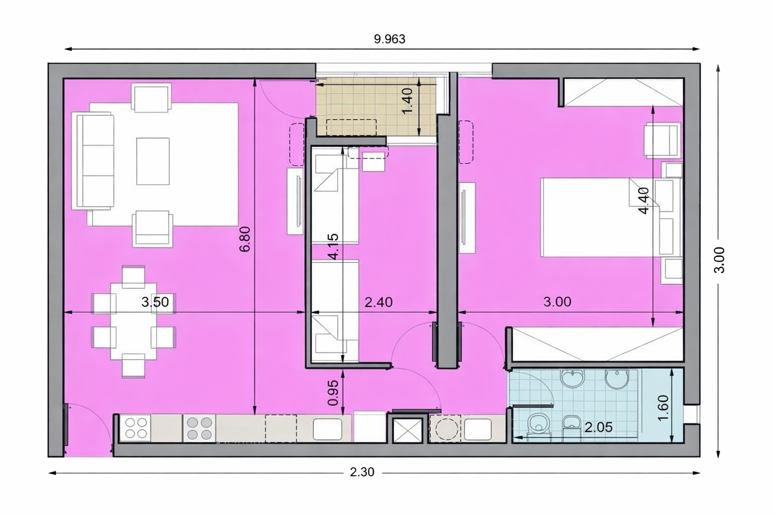 ✅ Estar – Comedor amplio y luminoso con aire acondicionado.